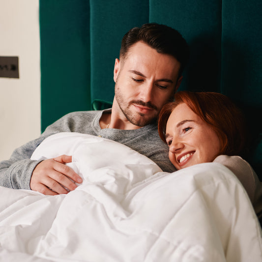 A couple enjoy their heated king size duvet